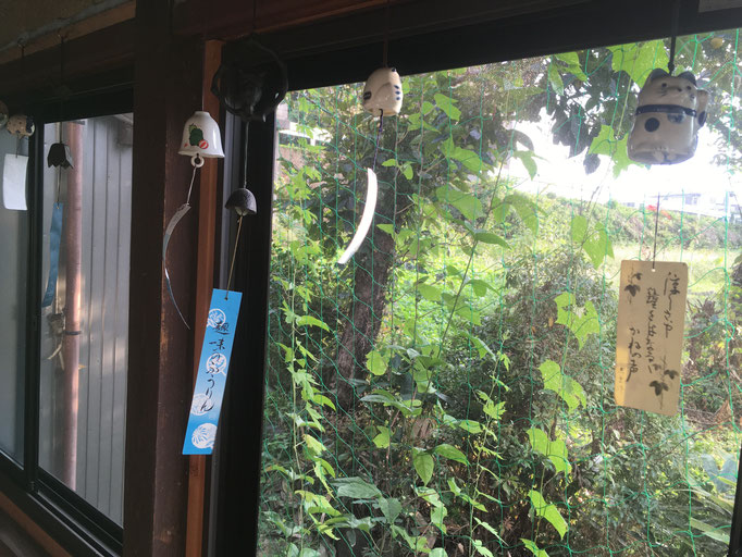 僕が宿泊した時は、ここで仕事をさせていただいたのですが…快適な上に風鈴の音色に心地よさを感じて気づけば眠ってましたね(笑)